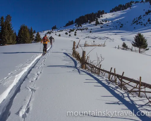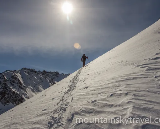 To conduct a ski touring guides choose one of Terskey Ala-Too gorges. Variants of ups as the number of downs are being chosen by guides based on the qualification of the group. All trips are one day long.