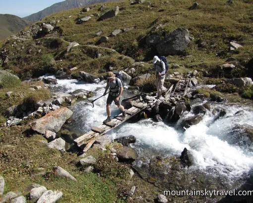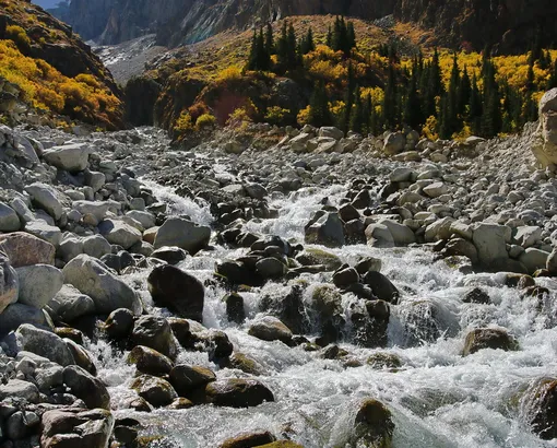 Road by car to alpine camp Ala-Archa it takes about an hour. Then we continue on the road, by foot. A narrow strip of asphalt road will lead us to a large stone plateau. We cross the plateau with lots of streams and continue on a destructed road. All the way in front of us we see Ala-Archa peak. The track goes from one shore to other shore. Stormy river becomes quiet and finally disappears beneath glacial sediments - moraine. There is no exact point of the end of the journey; it depends of the weather when we go down. In the evening we return back to the city by car.