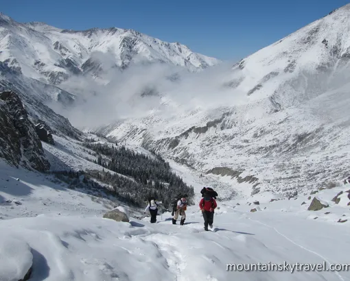 The strongest members can go to the lake formed on glacier or climb to the plateau of Ak-Sai glacier. The way down takes almost twice less than the ascent. Optionally, we can change route by going through Tepshi pass and down to Ala-Archa gorge below Ala Archa resort itself. From there we return to the city by car.