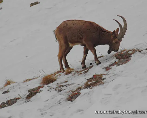 The national park is home for many animals and birds. There are hoofed mammals: ibex, wild boar and roe deer. Predators - foxes, wolves, also very rare snow leopard and Turkestan lynx. Besides there are small animals: marmot, hare, marten, and ermine. Birds - partridges, ular, eagles and vultures.