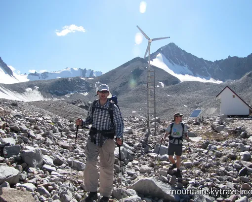 The strongest participants will be able to reach the glaciers. There are magnificent panoramas and the lake in the glacier, surrounded by beautiful snow peaks. A glaciological station on the shore for climate monitoring. Way down the same route. And then we return to the city by car.