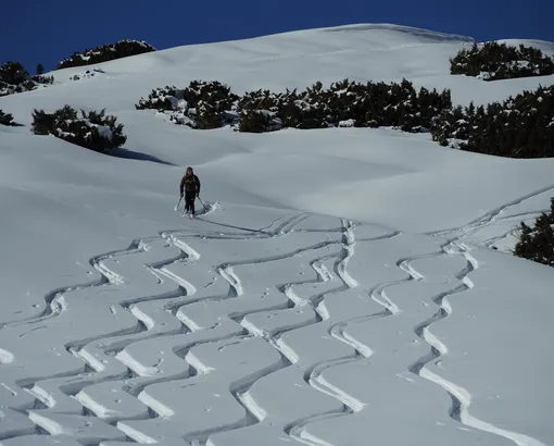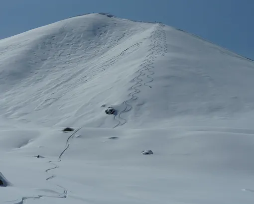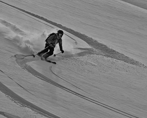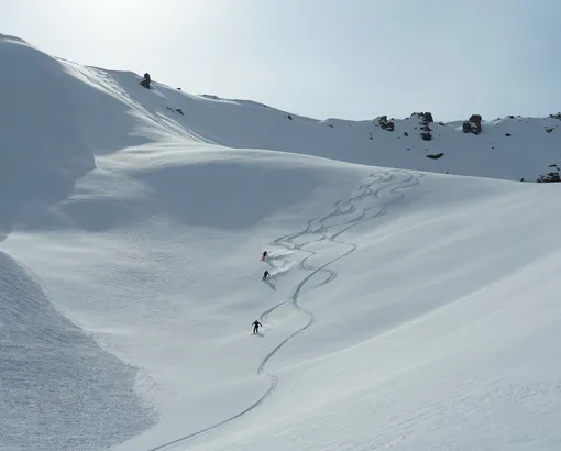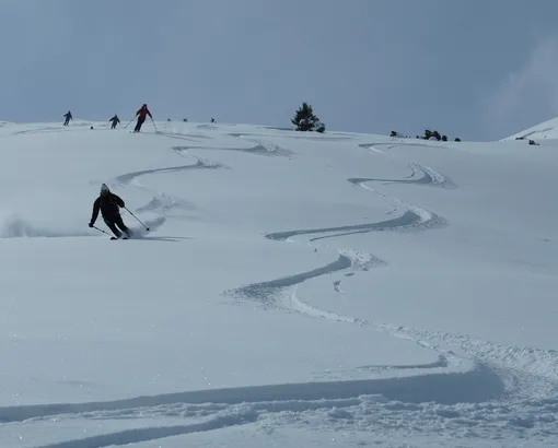 There are both gentle slopes for freeride beginners and steeper ones for advanced skiers. You can also lay your line through a vast forest area. And for those who want thrills, there are extreme descents in the couloirs between the rocks. Here you need to understand the full degree of danger and listen to the advice of the guides.