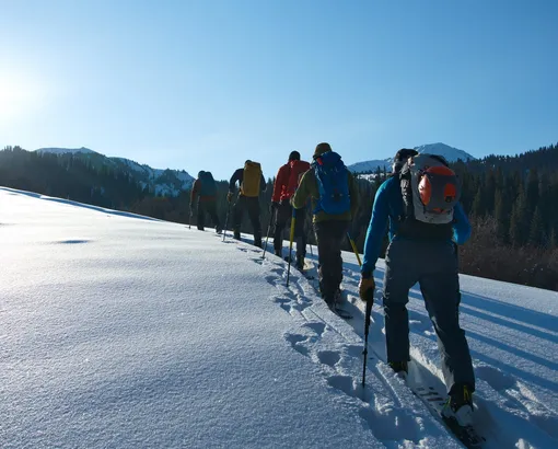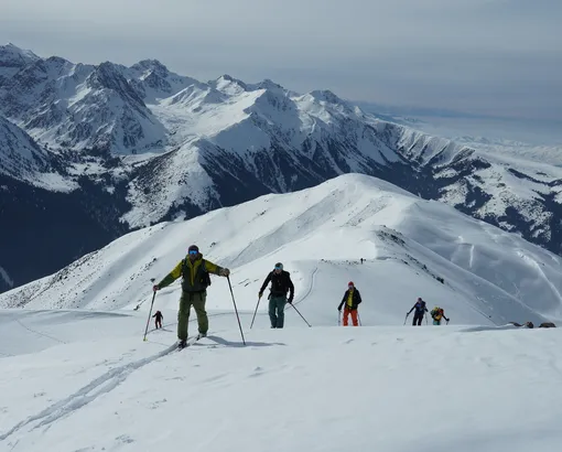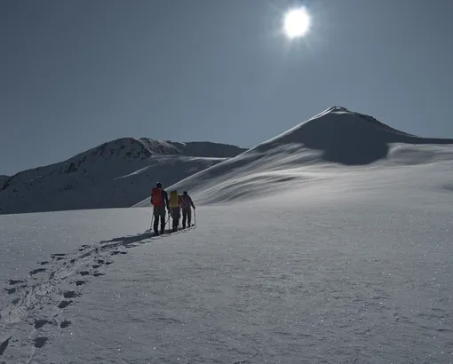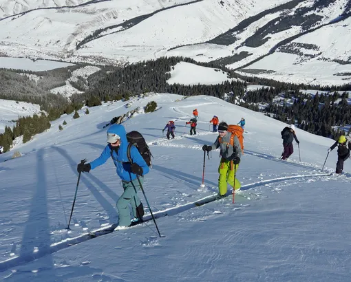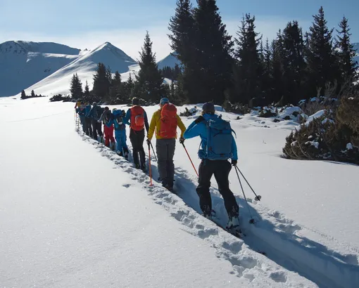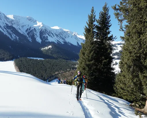 Breakfast, departure on skis or splitboard to one of the ski areas accompanied by experienced guides. During the entire trip, short overview lectures and practical classes on avalanche safety. Lunch on the slope, previously taken in the canteen. We climb to the highest point planned for today. We make one or more descents above the forest zone, then go down below. We also make one or more descents-ascents in the forest zone. In the evening, descent to the camp, après-ski, dinner.