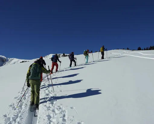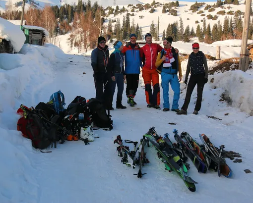 Breakfast, departure on skis or splitboard to one of the ski areas accompanied by experienced guides. During the entire trip, short overview lectures and practical classes on avalanche safety. Lunch on the slope, previously taken in the canteen. We climb to the highest point planned for today. We make one or more descents above the forest zone, then go down below. We also make one or more descents-ascents in the forest zone. In the evening, descent to the camp, barbecue with beer, sauna, dinner.