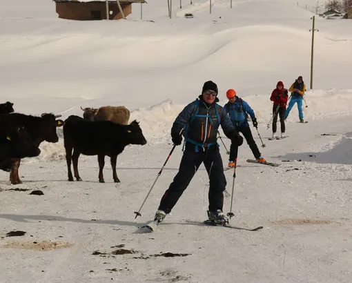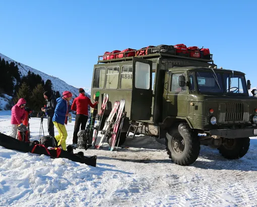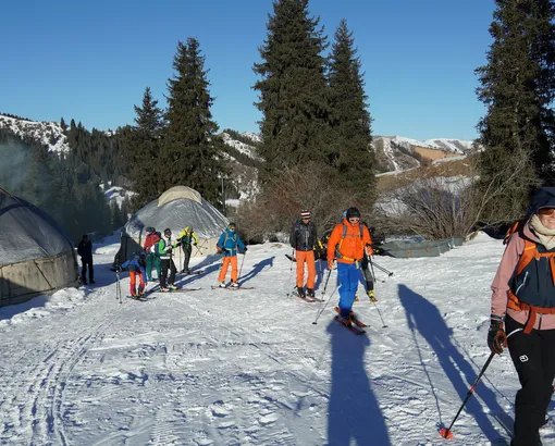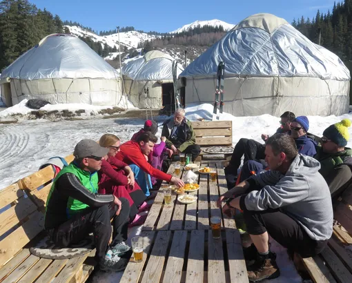 In the morning we pack our things, have breakfast and go down to the forester's house. Here we are met by transport. On the way we stop in one of the gorges - a full ski tour day. After that we continue our trip to the village of Jyrgalan. Here we have dinner in a cozy hostel.