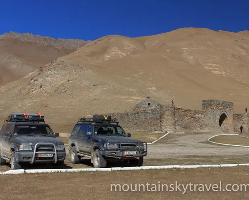 230 km by car. After breakfast, load the car, go round the lake and drive another pass. We descend by the steep serpentine to the picturesque valley. We cross Naryn river upon the bridge and come to the stunning red-colored canyon. There ascent to the pass begins. There is beautiful panorama. The road serpantines through a long slope and leads us to the foot of the At-Bashy range. Overnight in the yurt camp near the historical monument - Tash-Rabat Caravanserai. The tour through the maze of the caravanserai. Hot shower and dinner.