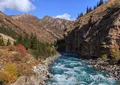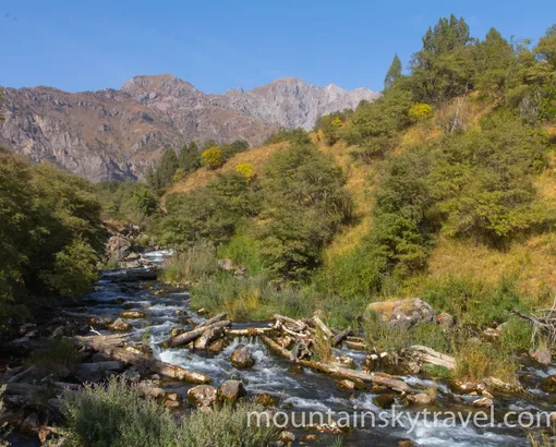 230 km by car. After the breakfast, we deconstruct camp. Take car and go back to the highway. We continue drive along Chychkan gorge to Toktogul reservoir. There you can stop for a swim in the warm lake. Then again we leave asphalt now for longer period of time. The narrow road serpentines in mountain gorges. We pass small villages, driving from one valley to other valley. As a result, we get down to the big river - Kekemeren, with beautiful rock walls. Overnight on the river in the tent camp.