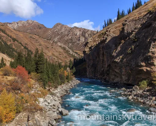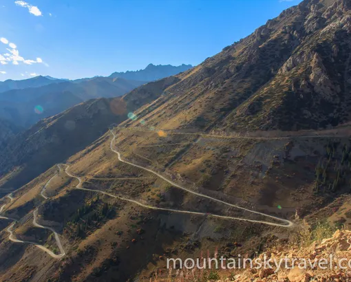 300 km by car. Meeting at the airport. The route starts with a mountainous road Bishkek - Osh. The road with good asphalt winds through the narrow gorge. There are many steep serpentine with spectacular views from the bird's-eye view, and we drove in the tunnel at an altitude of 3200 meters. On the other side of mountain you will meet a completely different world - the majestic alpine valley - Susamyr which is about one hundred kilometers in length. It ends with another pass, beyond which a steep descent to the picturesque gorge Chychkan begins. There is crystal clear river, steep slopes covered with forests and granite rocks. There is a small but beautiful lake Itagar a few kilometers away from the road. Lunch outdoors. Overnight in tent camp