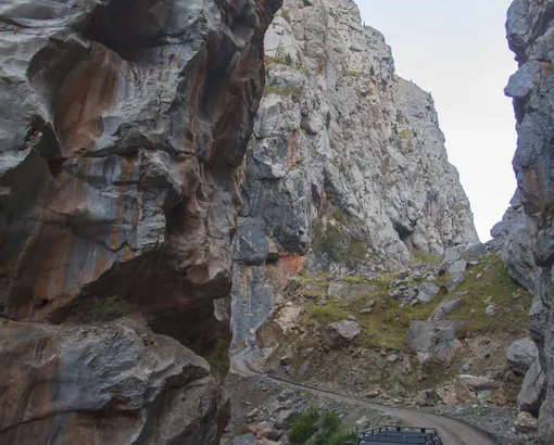 200 km by car. Breakfast in yurts, we pack stuff and go to the regional center - Naryn city. Here we can buy some products, and we go up along the river Naryn. Along the way, there are a lot of settlements, and there is a construction of Upper Naryn HPP on the confluence of Small and Large Naryn. In the future there will be reservoir. Our way lies up along Small Naryn river with amazingly beautiful canyon. Overnight in a tent camp on the bank of the river.