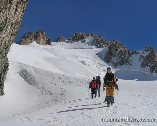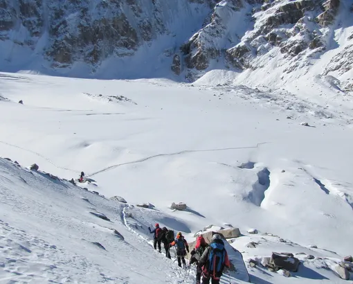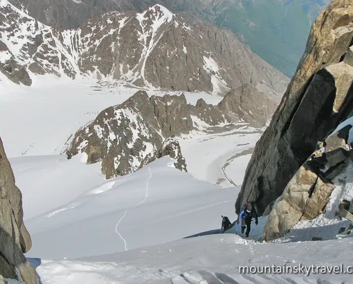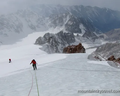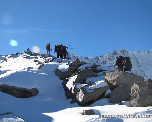To pass this route you need basic skills to work with the rope and the ability to move on crampons on ice up to 45 degrees. If you often go to the mountains, but have never tried technical climbing, we suggest taking trainings before. We can combine main tour with climbing courses by adding several more days to the program. If you are newbie to the mountains, it is suggested to start with simple ascents, on Uchitel (Teacher) peak.