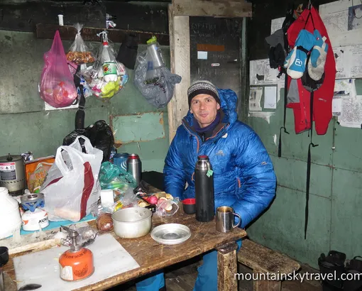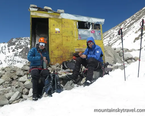 After the breakfast we test equipment and go to Ak-Sai icefall. We practice on ice routes, working with rope and ice equipment in rope teams and organizing stations. Overnight on Ratsek Hut.