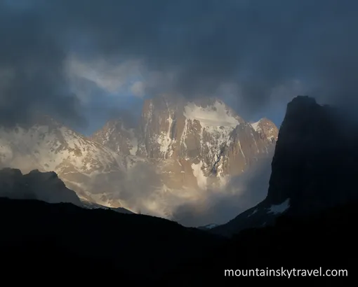 Crown Peak - is one of the most beautiful peaks, being the visiting card of Ala-Archa area. This is a large massif, consisting of six rocky towers with a maximum height of 4860 meters. There are dozens of routes with varying difficulty of them. For the beginning we can offer you the easiest one - upon Corona glacier to the second tower. Route has 2A category of difficulty based on the conventional classification in the CIS countries (from 1 to 6).