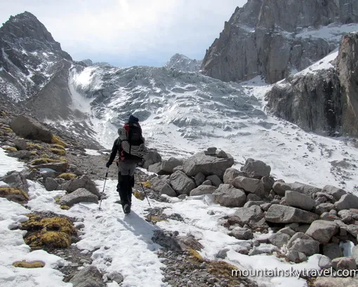 Transfer from Bishkek to National Park Ala-Archa (2100m). Then walk along the picturesque gorge of Ak-Sai to Ratsek Hut (3300 m). Accommodation in a mountain hut or in own tents on the territory of Ratsek, short acclimatization treks around the neighborhood.