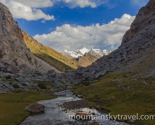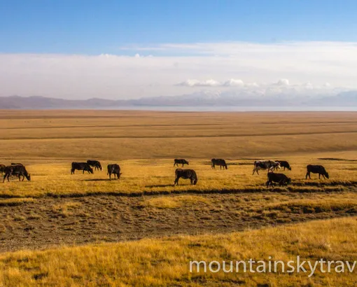 300 km by car. Going downstream, a narrow canyon begins soon. This is Kekemeren river. Today we will get to the Son-Kul lake. Soon the mountains move aside, and we enter Jumgal valley. Over 50 km we turn again to the mountains. Ascent to the next pass begins, through which we get to Sonkul lake (3013 m asl). Here we can eat fried fish, see flocks of sheep and herds of horses. Overnight in a tent camp or in the yurts near the lake.