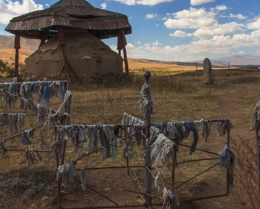 230 km by car. After breakfast, load the car, go round the lake and drive another pass. We descend by the steep serpentine to the picturesque valley. We cross Naryn river upon the bridge and come to the stunning red-colored canyon. There ascent to the pass begins. There is beautiful panorama. The road serpantines through a long slope and leads us to the foot of the At-Bashy range. Overnight in the yurt camp near the historical monument - Tash-Rabat Caravanserai. The tour through the maze of the caravanserai. Hot shower and dinner.