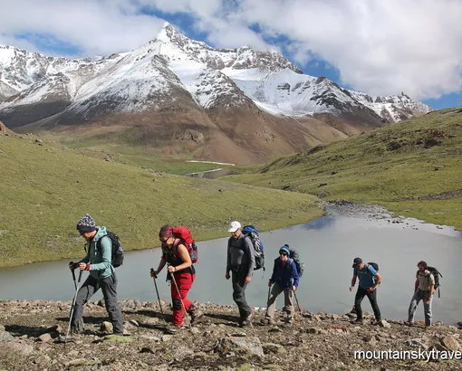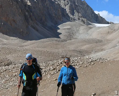 Gentle trail often becomes steep climbs, further and further new panoramas appear. By lunchtime, we come up to the moraine with beautiful lakes. After lunch, walk along the lake. If the weather is good enough, you can take great pictures of the sunset and sunrise. Lunch sandwiches on the road. Overnight in a tent camp on the moraine close to the lake.