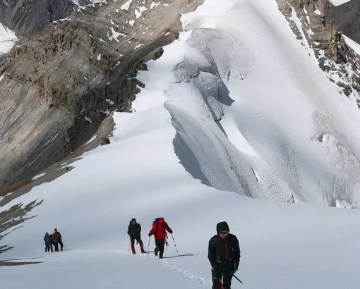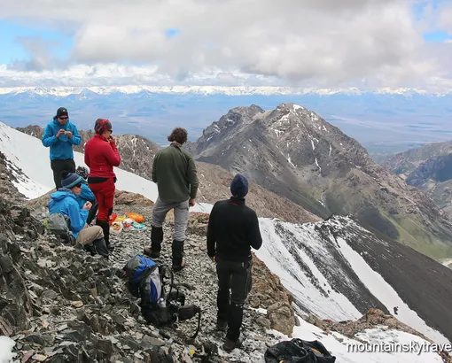Panoramic (Yuhin) Peak, 5100 m is a simple peak in the area of the first camp. Climbers make acclimatization ascents before the main ascent on Lenin Peak. All you need is a little patience to admire the magnificent panorama. By our return we will have a delicious lunch in Camp 1. After lunch descend to the base camp, shower, dinner.