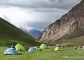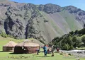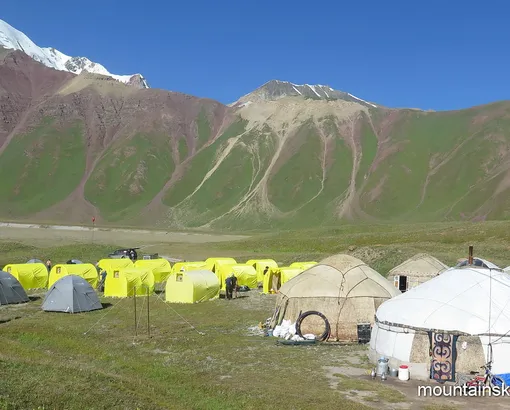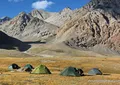 After the breakfast we deconstruct the camp. Today, we go only downhill. Stone landscape are quickly replaced by meadows, then there would be way out of the gorge into the valley. Here we will take a vehicle and drive to the base camp of Lenin Peak – Achik-Tash (3600 m). Accommodation - in tents camp, a hot shower, and dinner in the dining room of base camp.