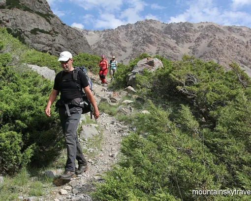 Pick up at the airport Osh city. Moving through Papan reservoir and further along the Kichi-Alai picturesque gorge. In a few hours walking part of the route begins. Today is acclimatization day - we will not go far. Also you need to have a rest after the flight. Typical landscapes of Pamir-Alai is quaint archa (juniper) on the steep rocky slopes of the background. Overnight in tent camp.