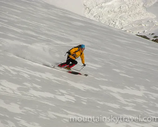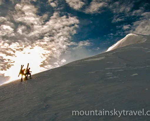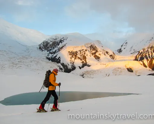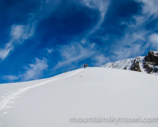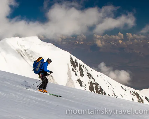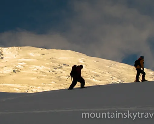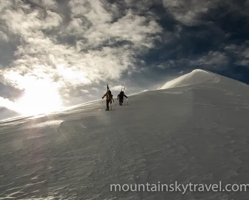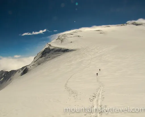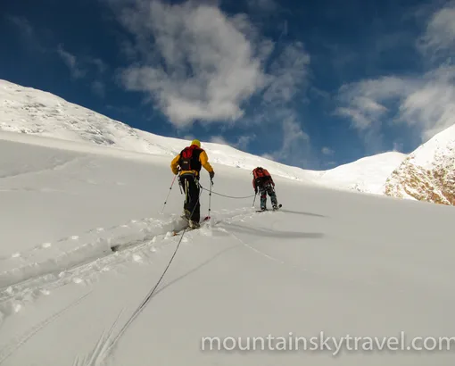 Acclimatization program is not so much different from the program of mountaineering. The distinguish in the programs is that during the acclimatization and days of the rest we organize ski touring on nearby slopes. The program is recommended, but is not mandatory to use. You can develop your schedule ascent and subsequent descent from the summit. If you want to change the duration of the program or to add any other services, please contact us, we would be happy to develop an individual program.