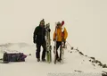 Descent along the northern wall of Lenin Peak. It is better if someone corrects the descent line by radio.