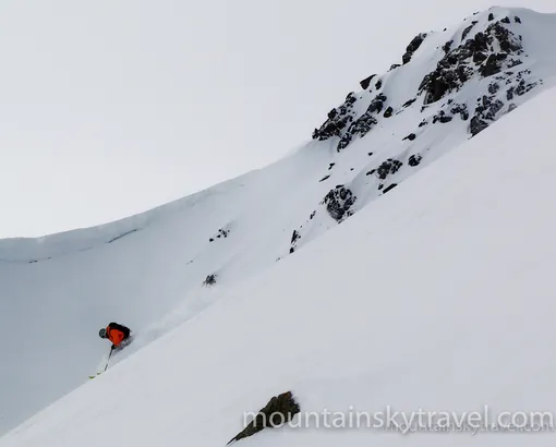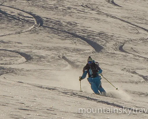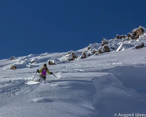 We invite you to visit one of the best areas for off-piste skiing - alpine Suusamyr valley. The valley stretches from east to west on 90 km, forming the southern slopes (Kyrgyz Ridge) and northern (Suusamyr Too Ridge) exposition. The relief is very diverse - from the wide slopes to steep couloirs with falls. There are no forests of firs as in Karakol, or of nuts as in Arslanbob. At first glance, this region looks harsh and lifeless. However, the panorama that opens from the top of these mountains will be in your memory forever. The difference in altitude is up to 1000 meters, the slopes are often 30 degrees or more. Dry, powdery snow forms a cover depth of half to two meters.