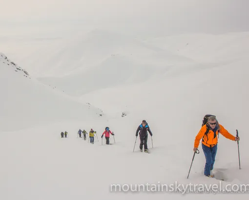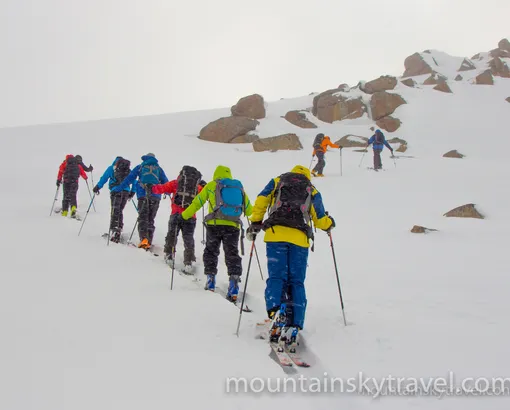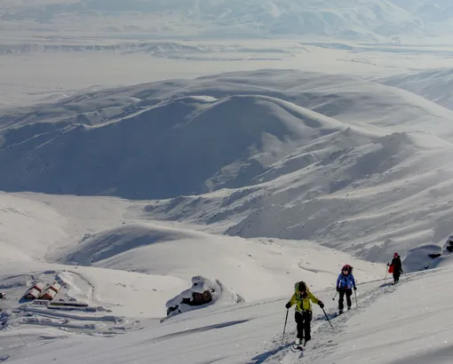 During the program one day can be devoted to the rest. At this day, you can ride on the slopes of Suusamyr’s ski area, or take advantage of a snow-cat riding or just meditate sitting under mountain sun, and in the evening warm up in the sauna. The day of rest could be replaced by a ski touring by participants’ request.