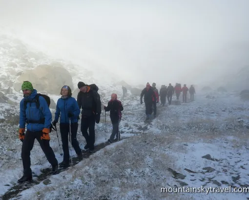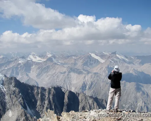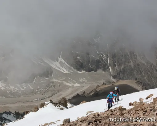 Peak Uchitel (Teacher) – is one of the highest peaks, which can be ascended without technical equipment and specialized training. The altitude is 4540 meters. All the way is walking on the stone scree and snow. The main difficulties, which can be faced, are physical activity and height, or frost and strong wind. Short drive and easy approach of route make this summit very popular among beginner climbers and fans of outdoor activities. But with all this simplicity you should not forget that the mountains are a source of a danger. Therefore, to approach even to the simplest ascent should be a responsible and objective assessment of own strength.