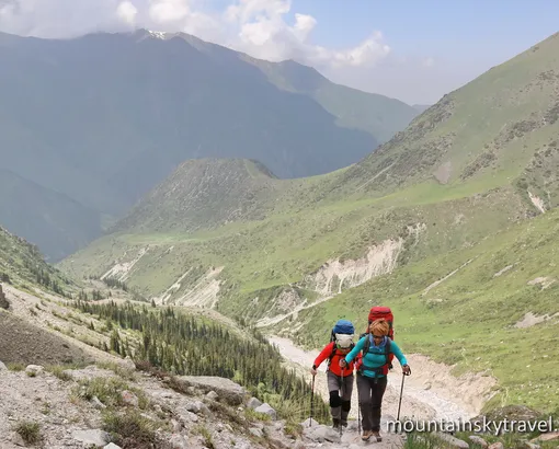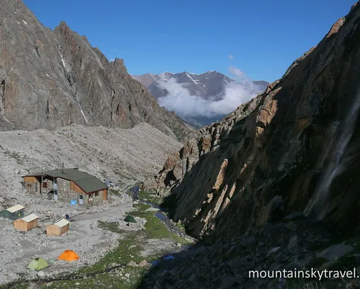 Transfer from Bishkek city to National Park Ala-Archa (2100m). Then walk along the picturesque gorge of Ak-Sai to Ratseka hut (3300 m). Accommodation in a mountain hut or in own tents on the territory of Ratseka Hut. There we will have short acclimatization treks around the neighborhood.